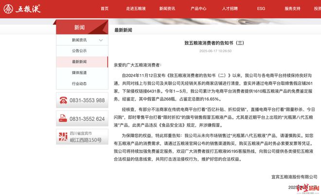 《致五粮液消费者的告知书(三)》 图源:五粮液官网