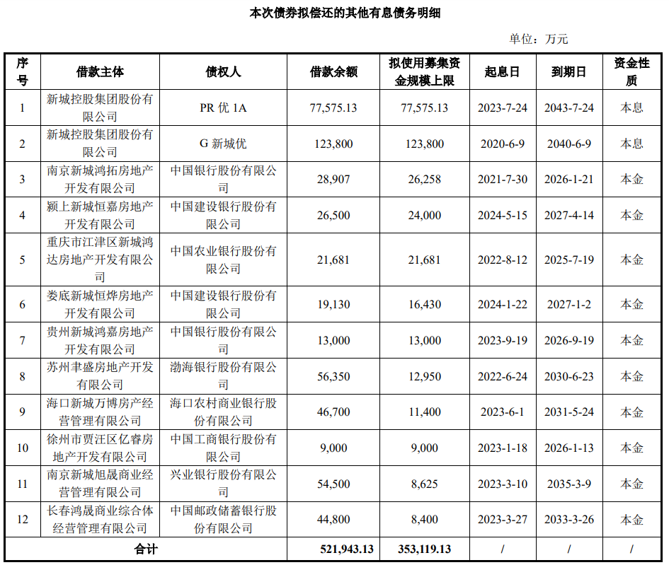 其中,拟使用不超过11亿元募集资金偿还发行人“23新城01”和“23新城02”公司债券本金。两只债券的到期日分别为2026年6月1日和2025年6月16日,余额分别为4亿元和7亿元。