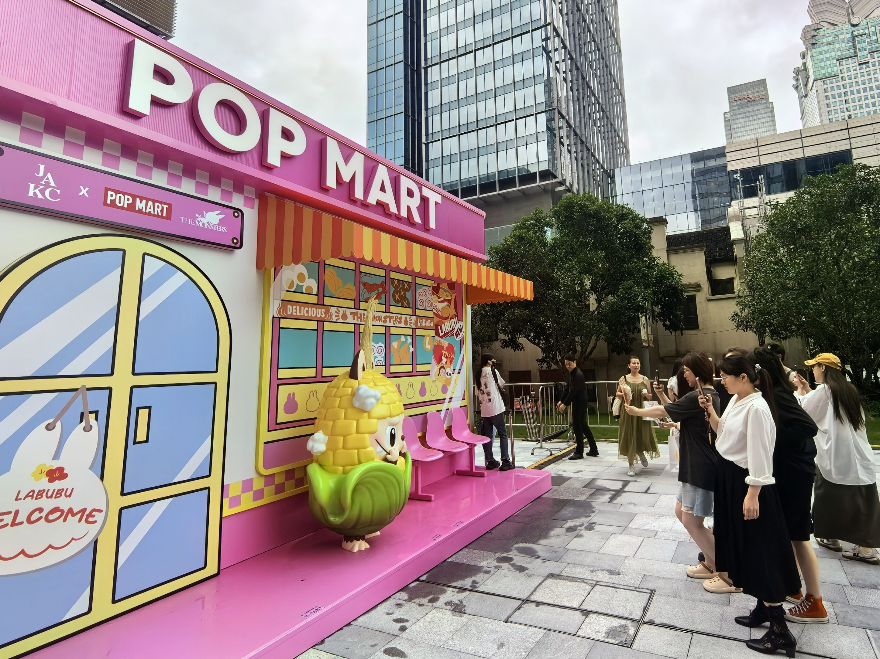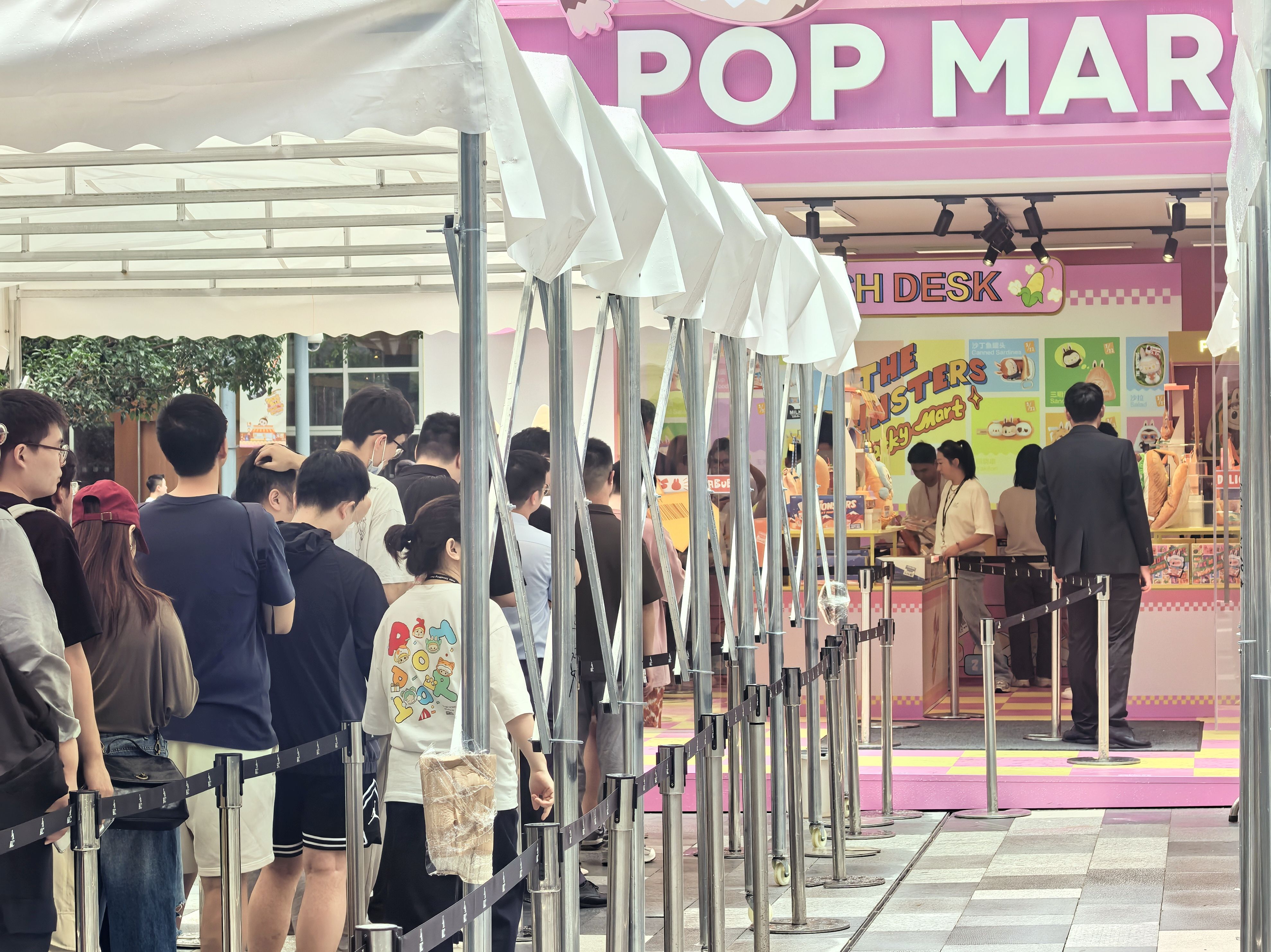 6月13日上午11时许,记者在上海静安嘉里中心南广场看到,“THE MONSTERS怪味便利店系列主题”快闪店门口被“铁马”和一米线包围,只有凭借有效的预约信息才能在规定时段进入“铁马”区域排队。