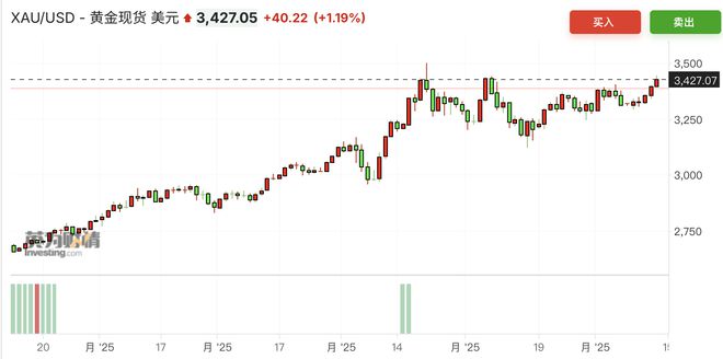 此外,近期高位盘整、无所突破的黄金也找到了催化剂。金价周五早盘再次突破3400美元/盎司关口,并逼近前高3435美元/盎司。