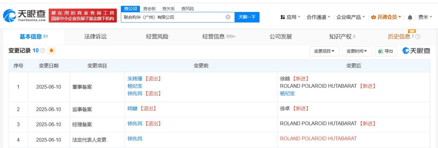 天眼查App显示,近日,联合利华(广州)有限公司发生工商变更,钟兆民卸任法定代表人、董事长、总经理,ROLAND POLAROID HUTABARAT接任法定代表人、董事长,并担任经理职位,同时多位高管发生变更。此前,联合利华(中国)有限公司发生工商变更,钟兆民卸任法定代表人、董事长,由ROLAND POLAROID HUTABARAT接任。