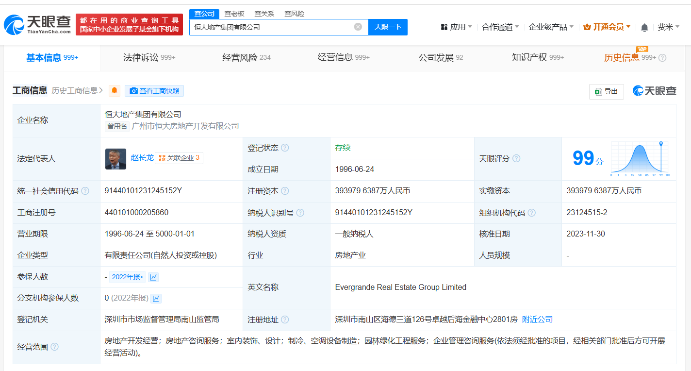 风险信息显示,恒大地产集团有限公司现存660余条被执行人信息,被执行总金额超830亿余元,此外,该公司还存在多条限制消费令、失信被执行人(老赖)及终本案件信息。