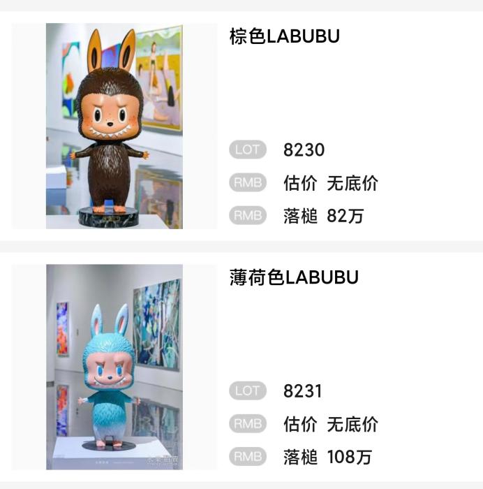 另一只高160厘米的棕色Labubu也以82万元落槌。