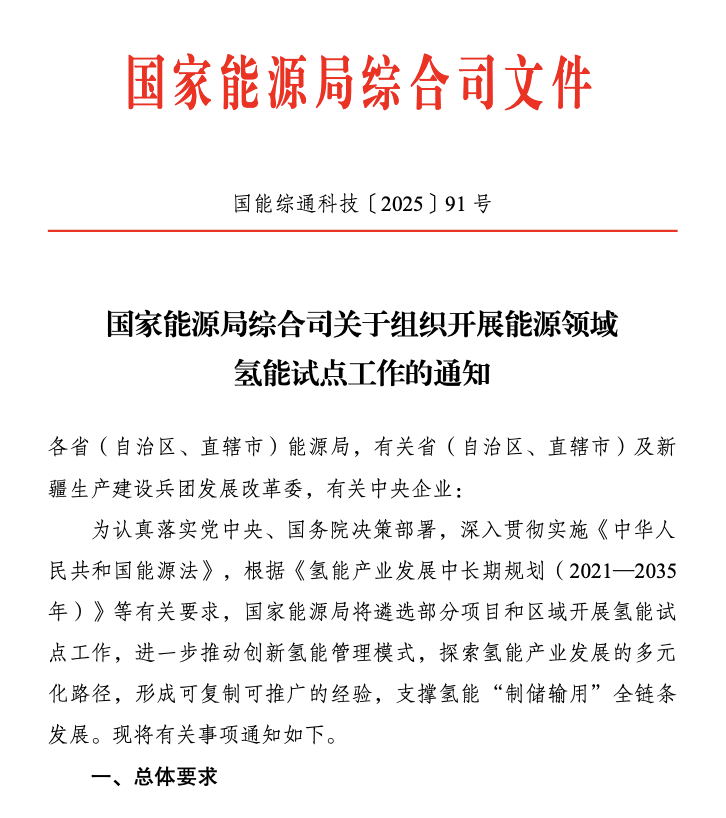 6月10日,国家能源局发布《国家能源局综合司关于组织开展能源领域氢能试点工作的通知》(下称《通知》)。国家能源局将遴选部分项目和区域开展氢能试点工作,进一步推动创新氢能管理模式,探索氢能产业发展的多元化路径,形成可复制可推广的经验,支撑氢能“制储输用”全链条发展。