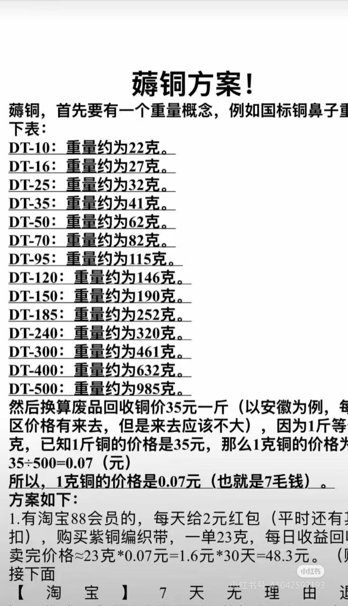 “但紫铜编织带就不一样了,废紫铜回收价今天能到42块一斤。我下单的一卷一米长、150克重,成本不到一块钱,卖废品能卖12块6,一个就赚11块多。利润是普通黄铜的三倍,这才是大头。”小李说。