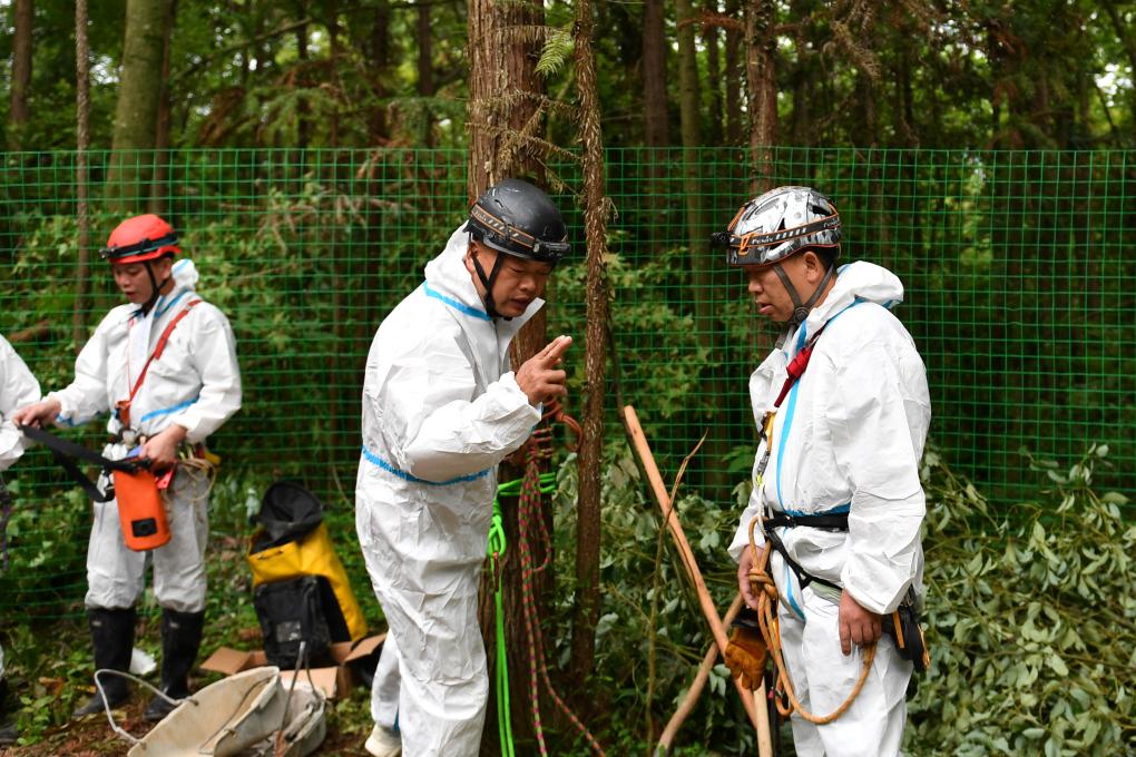 6月4日,专业人员准备进入慈利县东岳观镇彩球村大田坑溶洞进行清运作业。新华社记者 陈振海 摄