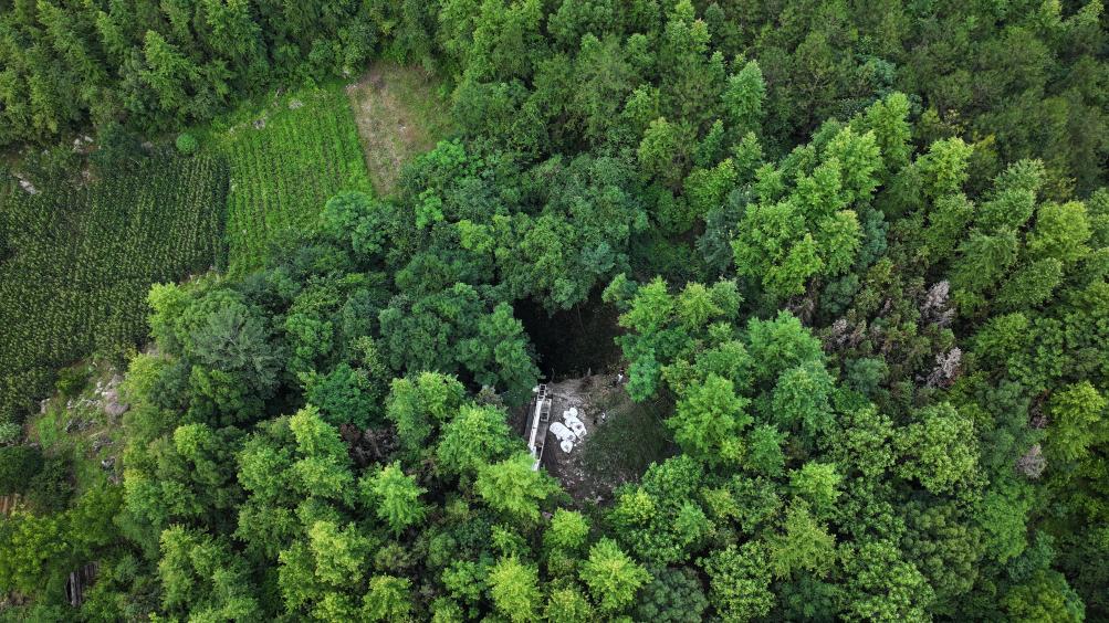 这是6月3日拍摄的慈利县东岳观镇彩球村大田坑溶洞(无人机照片)。新华社记者 陈振海 摄
