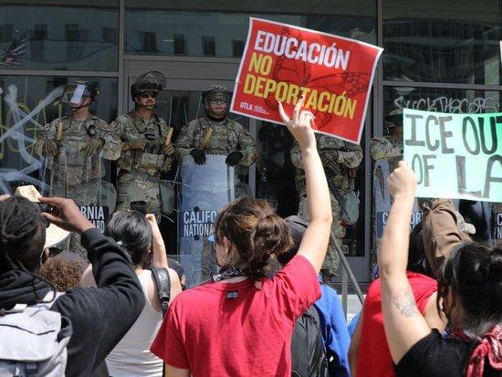 美国移民与海关执法局等联邦机构6日和7日出动大批执法人员,在洛杉矶县多地展开针对非法移民的搜捕行动,连续两日与当地社区居民发生严重冲突。在加州州长纽森没有请求支援的情况下,共和党籍总统特朗普已下令向洛杉矶地区派驻4000名国民警卫队人员支援联邦执法行动。(记者:惠晓霜)