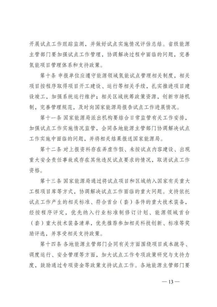 国家能源局发布关于组织开展能源领域氢能试点工作的通知,国家能源局将遴选部分项目和区域开展氢能试点工作,进一步推动创新氢能管理模式,探索氢能产业发展的多元化路径,形成可复制可推广的经验,支撑氢能“制储输用”全链条发展。