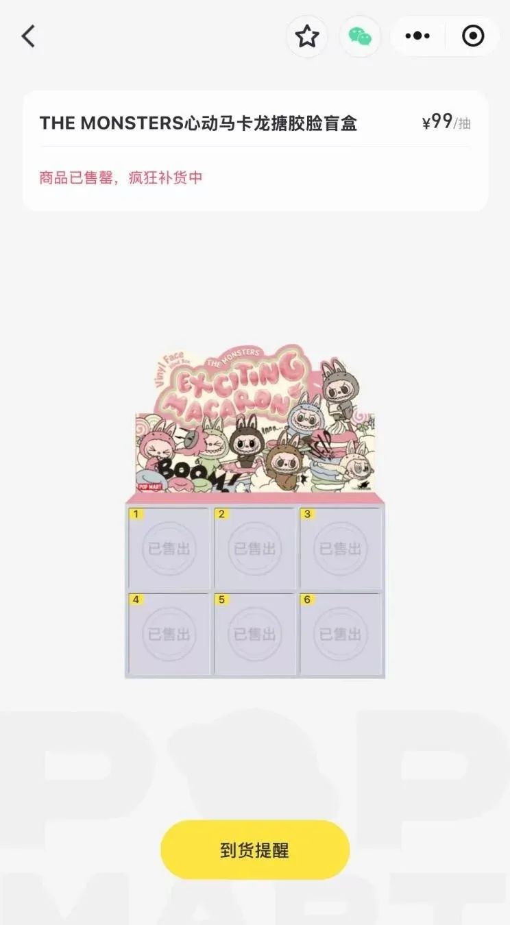 心动马卡龙系列盲盒已售罄。图/泡泡玛特小程序