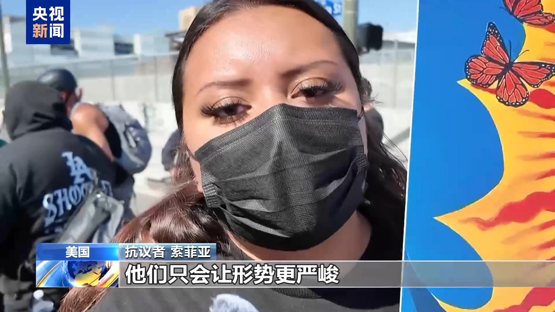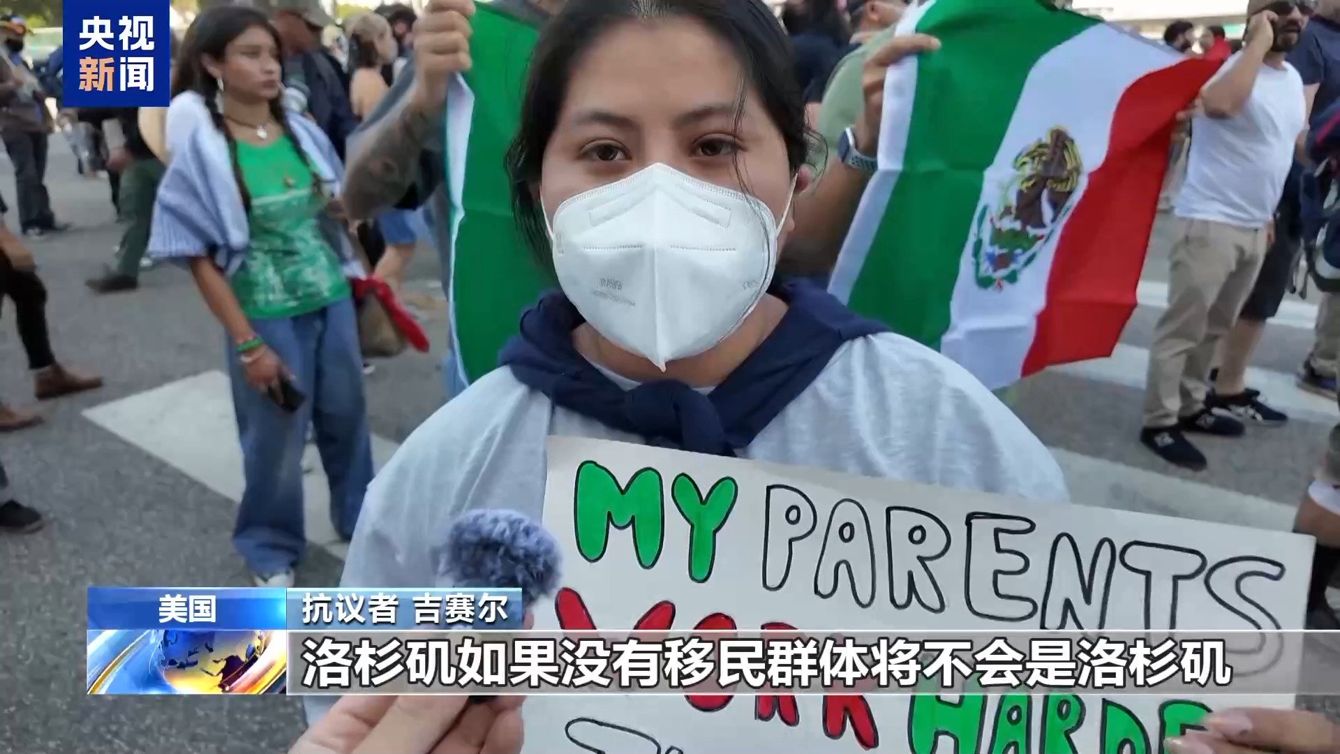 抗议者 辛迪:我们在这里抗议,是因为我们反对移民与海关执法局的警员,他们把辛勤劳动的移民绑走,所以我们在这里抗议。我出生在美国,但我反对他们的做法。他们如果想要遣返犯罪分子是可以的,但他们遣返的是为了家庭生存而辛苦劳动的人。我们不需要国民警卫队,这完全是联邦政府的过激反应。他们想要升级矛盾,从而对我们施加更多的控制。(央视记者 刘骁骞)
