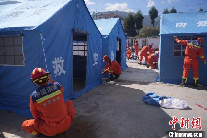 消防救援人员搭建帐篷。大理州政府新闻办 供图