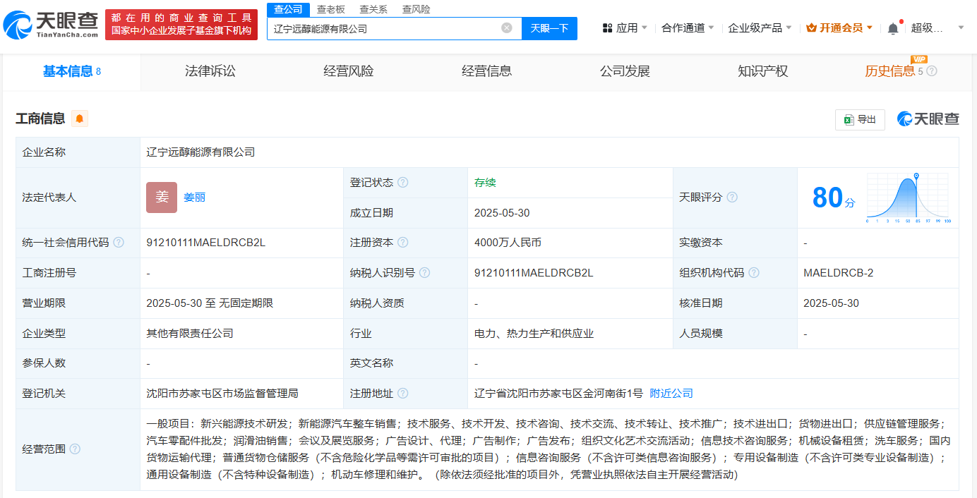 天眼查App显示,近日,辽宁远醇能源有限公司成立,法定代表人为姜丽,注册资本4000万人民币,经营范围包括新兴能源技术研发、新能源汽车整车销售、供应链管理服务等。股权全景穿透图显示,该公司由沈阳大龙洋石油有限公司、吉利旗下浙江绿动醇氢科技服务有限公司共同持股。