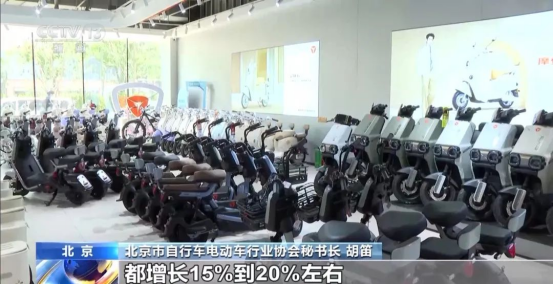 北京市自行车电动车行业协会秘书长胡笛:目前门店的销售量环比都有所上升,销售整体的情况比去年同期增长15%到20%。