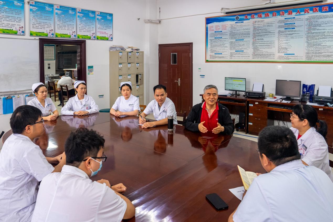 “授人以鱼,不如授人以渔”。在大化县人民医院、岩滩镇卫生所,专家们通过教学查房、坐诊、临床指导等方式传授先进的医疗技术和诊疗经验。通过手把手地教学和面对面的交流,帮助当地医疗人员拓宽诊疗思路,提高了专业技能,筑牢大化县医疗发展基础。
