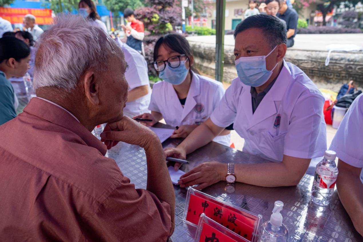 专家们认真接待每一位患者,耐心地为群众检查视力,提供白内障筛查等专业服务;通过望闻问切,为群众开具个性化的中医调理方案;针对老年人的常见病,如高血压、糖尿病等,给予了详细的健康指导。