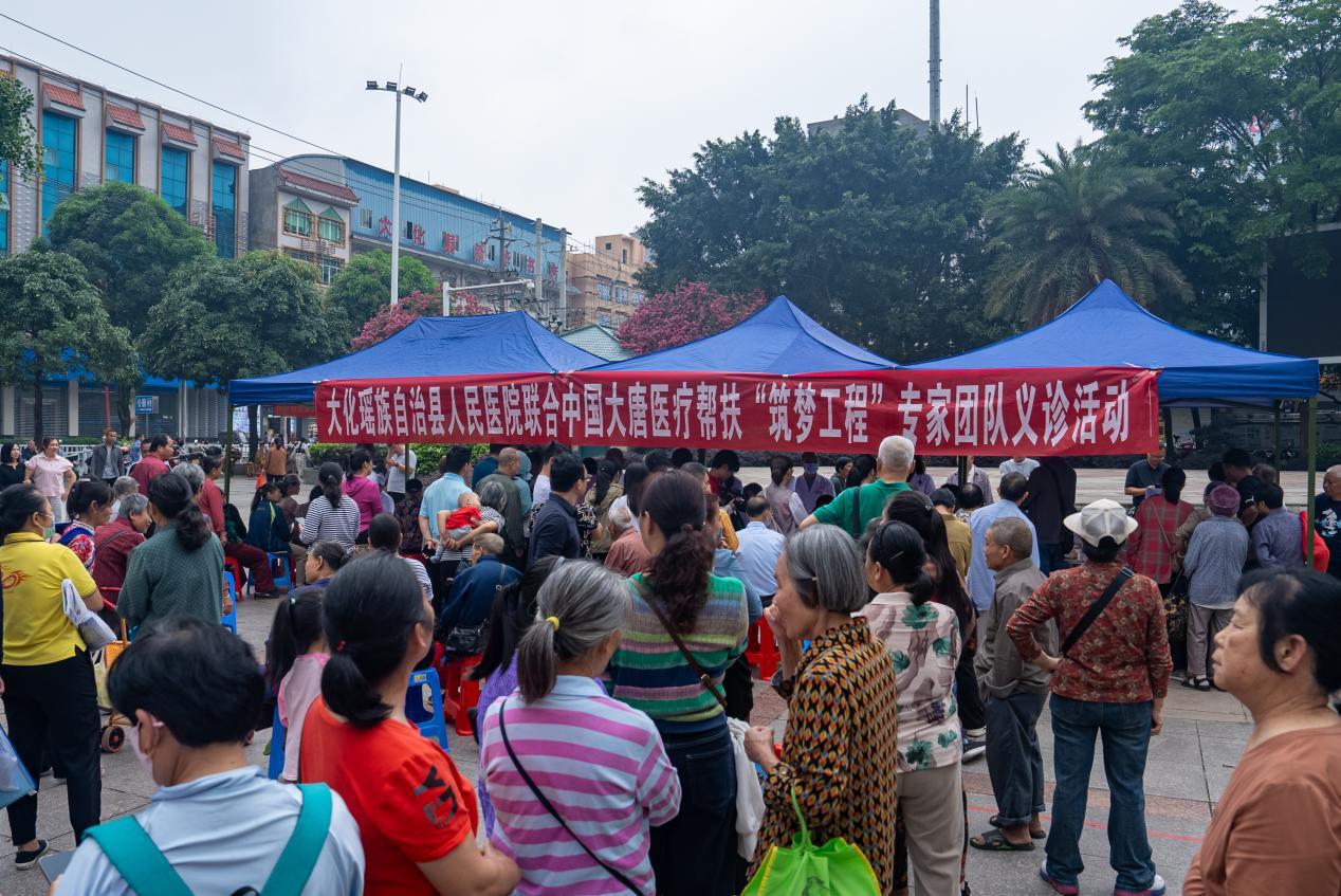 巍巍群山,阻不断医者仁心;悠悠红水河,流淌着央企深情。为贯彻落实国家专业人才“组团式”帮扶,丰富“三扶三真,五位一体”大唐特色帮扶体系内涵,5月26日至29日,由中国大唐集团有限公司组织北京同仁医院、北京大学第三医院等医疗专家组成“医疗筑梦”团队赴广西大化瑶族自治县开展医疗下乡、医疗专家进校园系列帮扶活动,通过街头义诊、门诊坐诊、县级医院学科建设及指导、学生心理健康辅导、健康宣教等举措,将优质医疗资源精准输送至少数民族地区,切实解决群众“看病难、就医远”问题。
