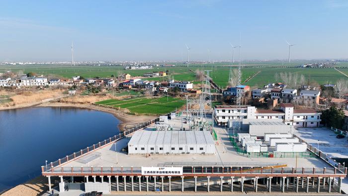 如今的棉船镇又有了一张新的名片。5月27日,国家电投集团江西核电100兆瓦棉船风电项目实现全容量并网发电,标志着棉船岛清洁能源供应体系基本建成,不仅能满足全镇3.2万居民用电需求,每年还可以向岛外输送2亿千瓦时以上的绿色电力,成为长江流域首个实现规模化可再生能源供电的“零碳岛”。