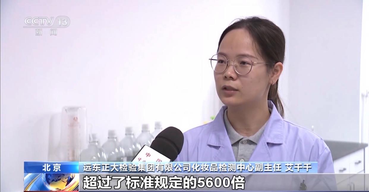 远东正大检验集团有限公司化妆品检测中心副主任艾千千:检测结果是5.6×10CFU/g(菌落总数),超过了标准规定的5600倍。