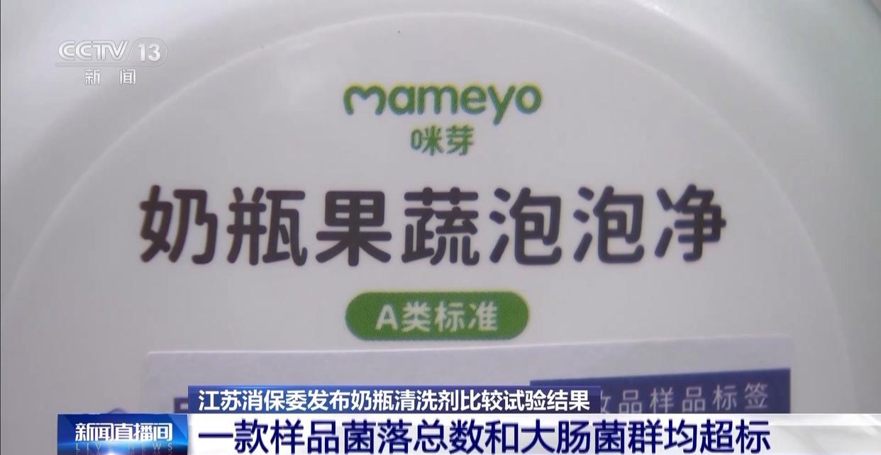 江苏省消费者权益保护委员会最新发布奶瓶清洗剂产品的比较试验结果显示,抖音咪芽官方旗舰店销售的一款标称“咪芽奶瓶果蔬泡泡净”的样品,菌落总数超过标准规定的要求。