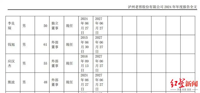 钱旭原定任期至公司第十一届董事会届满时止,即任期至2027年6月27日。资料显示,钱旭在2015年6月30日便担任泸州老窖外部董事,这也意味着他在公司任职已接近10年。