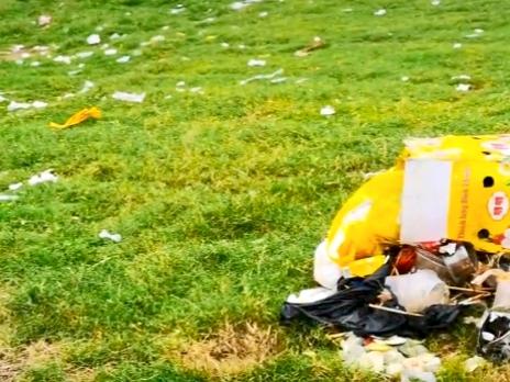 视频画面显示,事发地环境清幽,景色不错,而一处小溪旁的草地上留有大量塑料袋、包装盒、餐巾纸、酒瓶以及食物残渣等垃圾,并有焚烧痕迹,现场还有一条带有雅迪字样的宣传横幅。视频发布后引发关注,网民们议论纷纷,并喊话雅迪公司来清理。