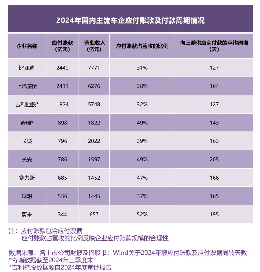 需要关注的是,从负债方式上看,国内汽车行业与地产行业的模式有显著不同。有业内人士分析认为,国内车企的负债模式本质是产业链协同,应付账款规模与向上游供应商付款周期均处于平稳状态。车企通过稳定的订单量获得供应商的账期支持,同时预售模式形成资金沉淀,构建起 "生产—销售—资金回流" 的闭环,而恒大是依赖高息信托、理财的 "借新还旧" 模式,风险程度有很大区别。