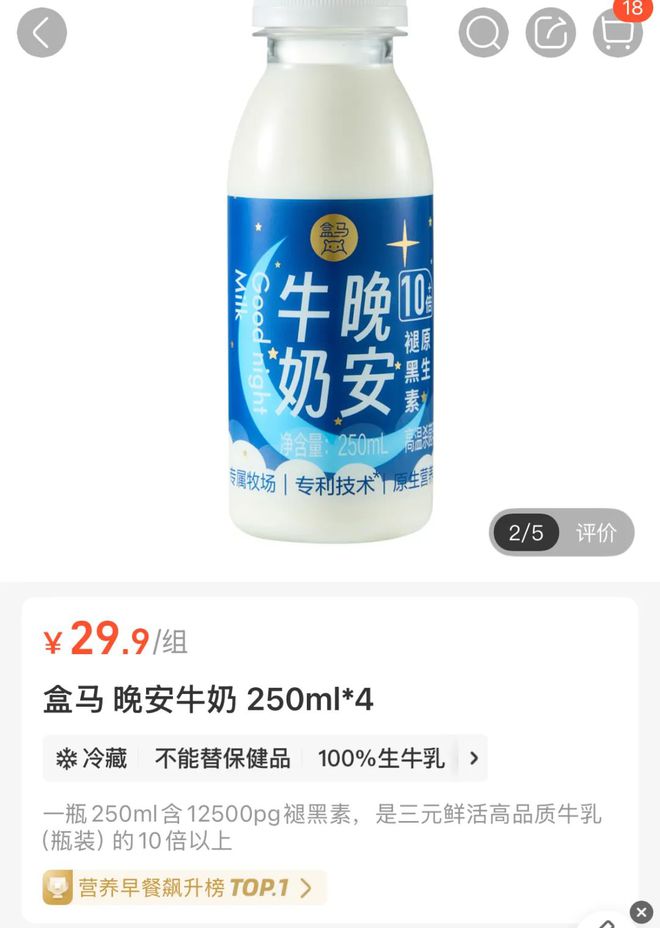 盒马新品“晚安牛奶”因功效被质疑,近日在社交平台引发热议