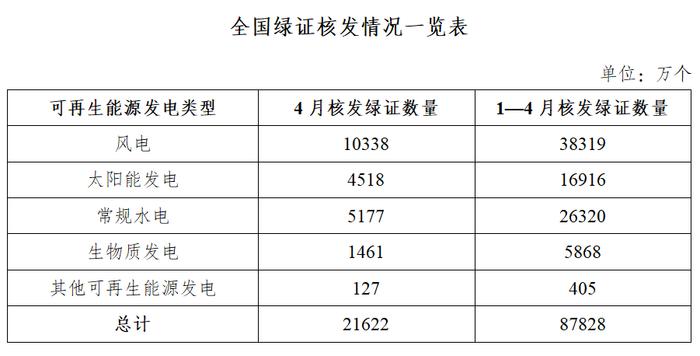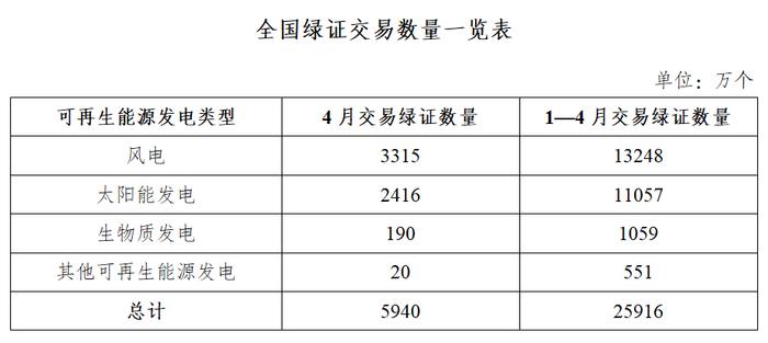 2025年4月,全国交易绿证5940万个,其中绿电交易绿证2739万个。2025年1–4月,全国交易绿证2.59亿个,其中绿电交易绿证8783万个。