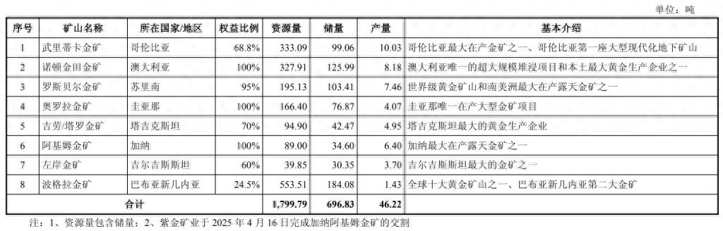 公司最新披露的预案显示,紫金矿业拟分拆至港股上市的资产将由八座位于南美、中亚、非洲和大洋洲的大型黄金矿山组成。八座矿山分别为武里蒂卡金矿、诺顿金田金矿、罗斯贝尔金矿、奥罗拉金矿、吉劳/塔罗金矿、阿基姆金矿、左岸金矿、波格拉金矿。