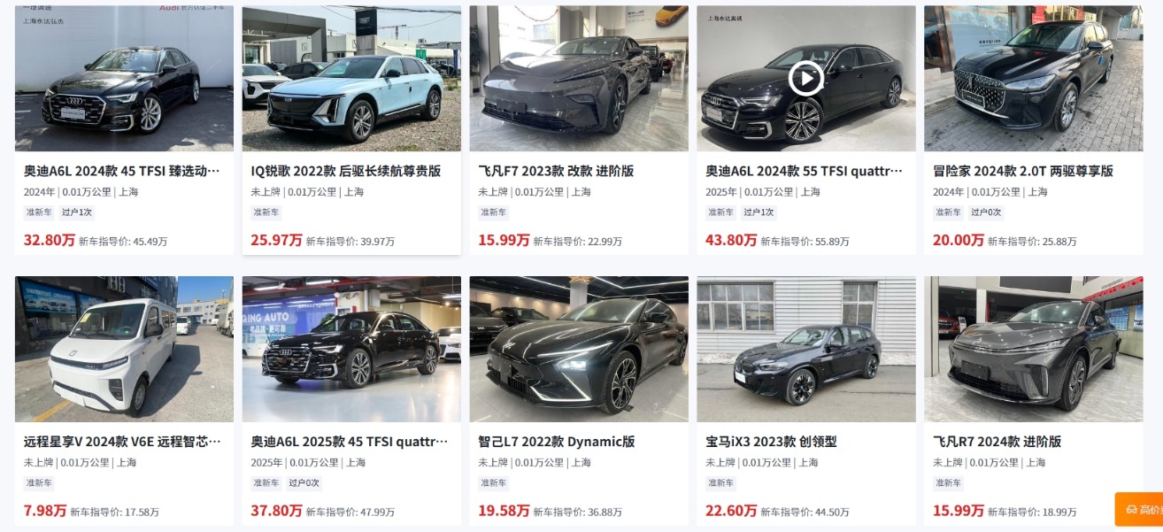 据了解,这种特殊商品的市场流通已形成较完整的产业链。新华财经在懂车帝、瓜子二手车、闲鱼等相关二手车平台看到,比亚迪、埃安、奥迪等品牌均有多款“0公里二手车”在售,售价普遍低于指导价数万元,部分车型上牌时间甚至标注为2025年4月。