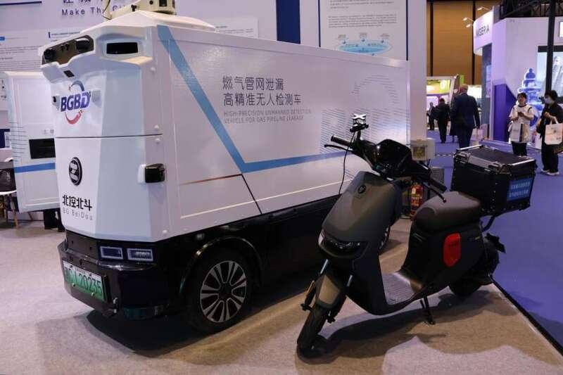 北控北斗推出的燃气管网泄漏高精准无人检测车在第二十九届世界燃气大会首发。实习生 杨丽/摄
