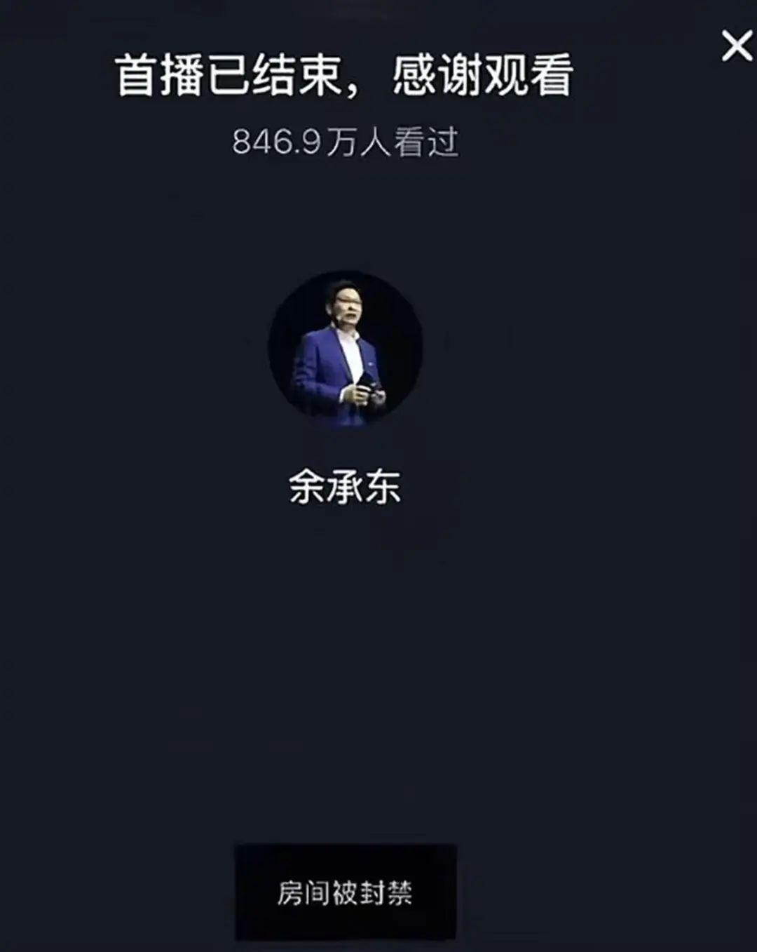 今年1月27日,时任华为常务董事、终端BG董事长、智能汽车解决方案BU董事长余承东的直播间被强制下播。