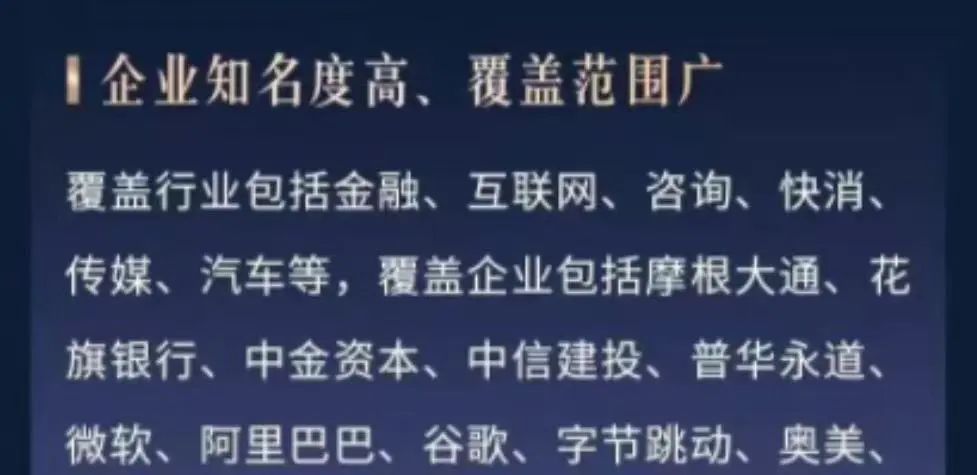 上述实习计划宣传图片显示,可以为客户子女提供金融、互联网、咨询、快消、传媒、汽车等行业的实习机会,不乏摩根大通、中金资本、谷歌、微软、字节跳动等知名企业。
