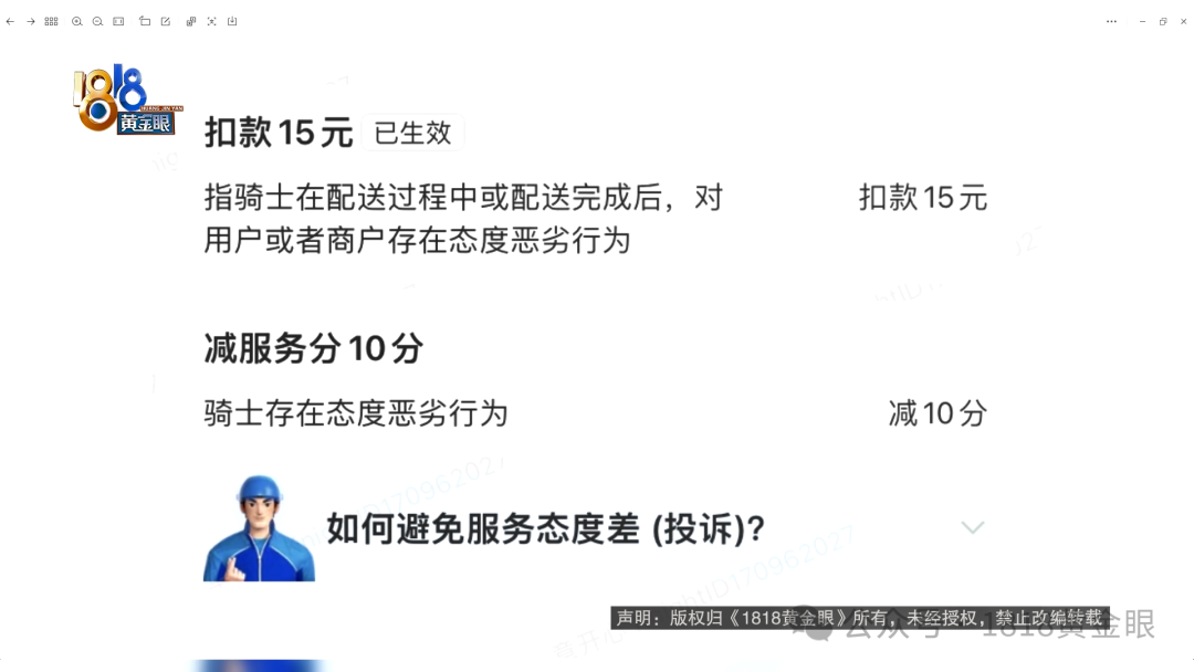 饿了么骑手服务热线:这个是针对他态度问题进行的扣款。