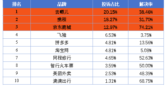 消费保平台公布的“大数据杀熟”被投诉企业榜单