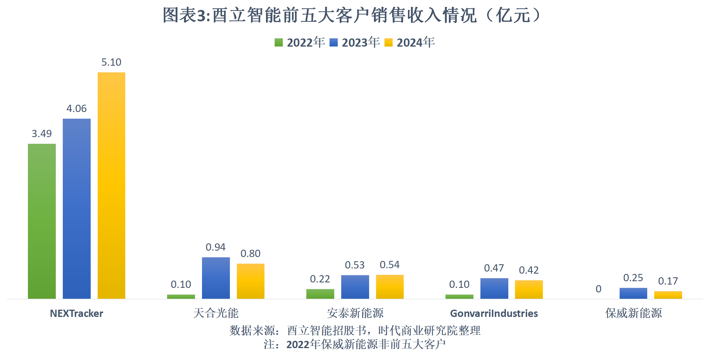 招股书显示,2023—2024年,酉立智能前五大客户均为NXT、天合光能(688599.SH)、安泰新能源、Gonvarri Industries(下称“GI”)、保威新能源,其中,除了NXT和安泰新能源,其他三大客户的销售额均同比下降。