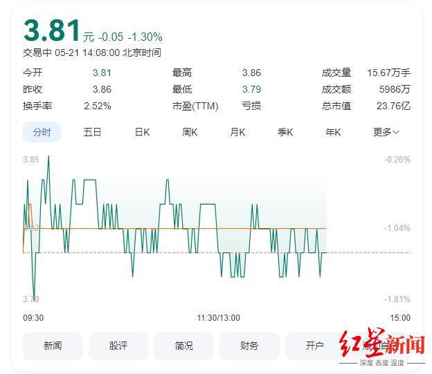 二级市场上,5月21日截至发稿,华神科技跌1.3%,报3.81元/股,总市值23.76亿元。