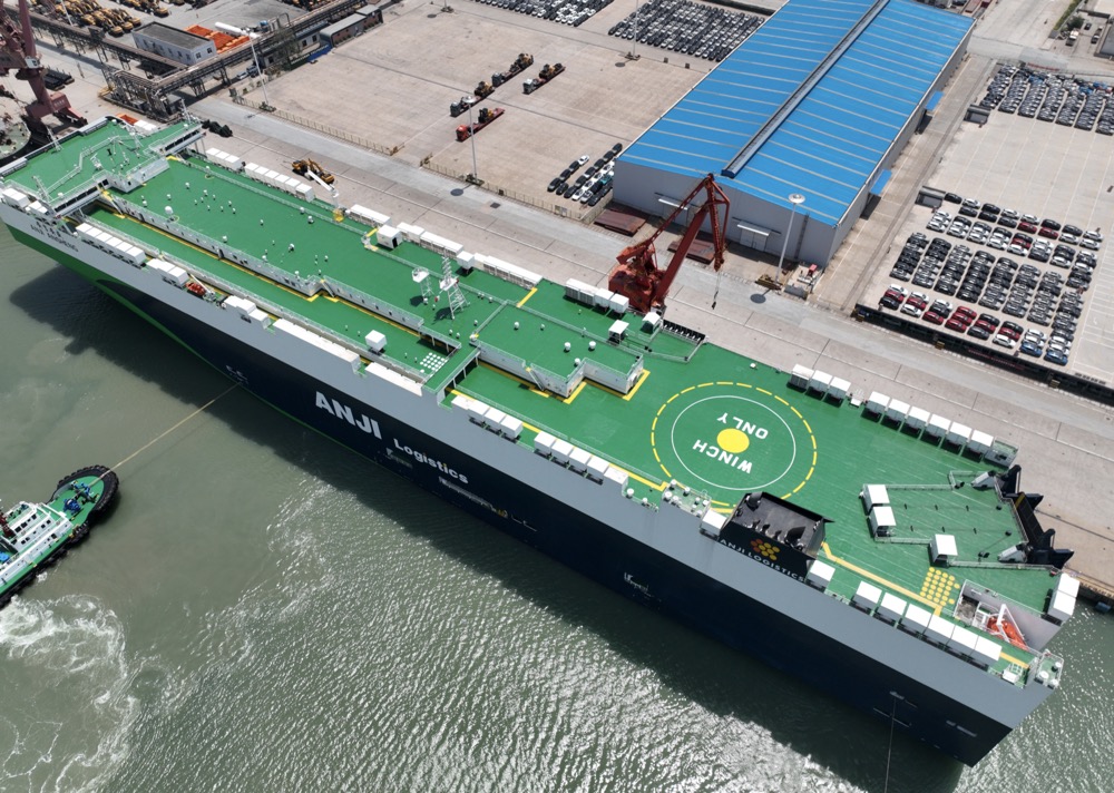 5月19日12时,利比里亚籍滚装船“安吉安盛”轮在连云港港加装3700余辆汽车、工程机械后缓缓驶离连云港滚装码头,首航欧洲。据悉,拥有9500个车位的“安吉安盛”轮,是目前全球最大、装载能力最强、能效水平最佳的汽车滚装船,也是上汽安吉物流打造的中国第一、全球领先的整车物流运输自营船队的标杆。此次首航欧洲,全力彰显中国汽车工业的规模化输出能力,助力我国整车出口跃居世界第一。