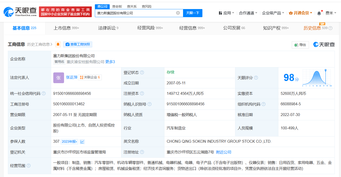 天眼查财产线索信息显示,近日,赛力斯(601127)申请注册“情景魔方”商标,国际分类为科学仪器、广告销售,当前商标状态均为等待实质审查。