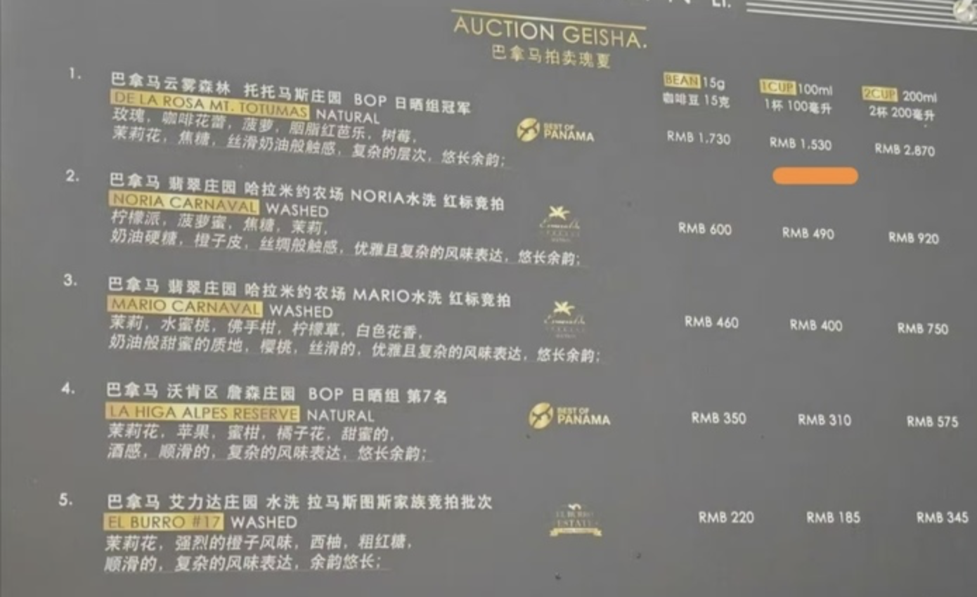 通常来说,这些天价咖啡大都宣称原料来自巴拿马最佳咖啡大赛竞拍。BOP是由巴拿马精品咖啡协会于1996 年创办的巴拿马生豆竞赛,是全球第一项生豆赛事,也是最知名的赛事之一。