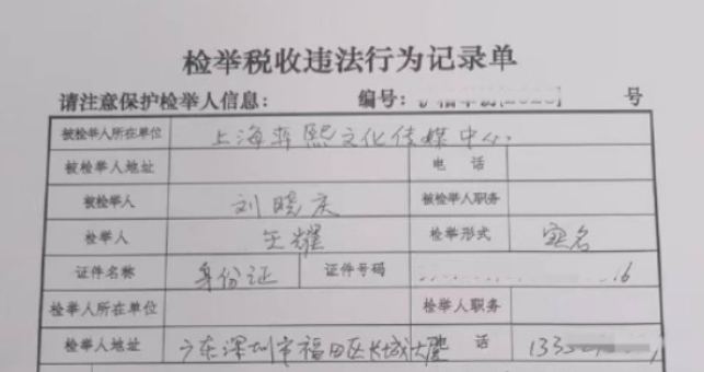 王先生称,刘晓庆在上海的全资公司上海弈熙文化传媒中心通过开具增值税发票的方式规避个人所得税。他提供了检举税收违法行为记录单,显示刘晓庆涉及330万元的交易,用“形象代言费”名义将款项转入公司,随后开出低税率的增值税发票,疑逃避高税率的个人所得税。