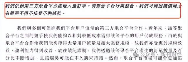 招股书中的风险提示章节也描述了这种依赖风险,字里行间透着无奈。“我们依赖第三方聚合平台处理大量订单。倘聚合平台行业整合,我们可能因议价能力有限而不得不接受不利条款。”