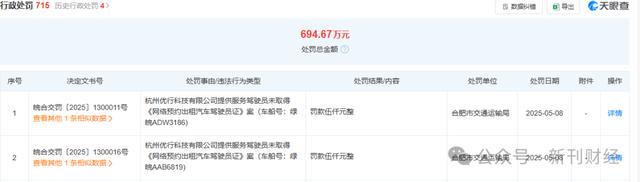 根据天眼查最新数据,其运营主体杭州优行科技有限公司累计受到行政处罚高达715次,累计罚金接近700万元。值得注意的是,在本次更新IPO招股书后,公司仍持续收到多地交通部门的处罚通知,其中合肥、哈尔滨等地新增11起行政处罚。这些处罚事由主要集中在"未履行审核驾驶员从业资格的法定义务",暴露出平台在司机资质管理方面存在系统性漏洞。