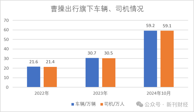 值得注意的是,2022年、2023年及2024年10月,曹操出行旗下活跃车辆数分别为21.6万辆、30.7万辆及59.2万辆,对应活跃司机数分别为21.4万名、30.5万名及59.1万名。其中截至2024年底,其自有车队规模达6.2万辆,若按每辆车购置成本10万元,仅该项目刚性支出就高达62亿元,此外,2023年度车辆折旧、利息支出及司机补贴合计占总成本的68%,同期滴滴的相应比例仅为42%,这种重资产运营的模式似乎增加了公司的成本负担。