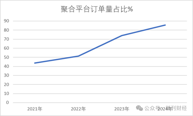 数据显示,2022年聚合平台订单占比51.4%,而2024年这一数字飙升至85.7%。这意味着,这个拥有近60万活跃车辆的"重资产"平台,正日益沦为百度、高德等流量巨头的"打工人"。