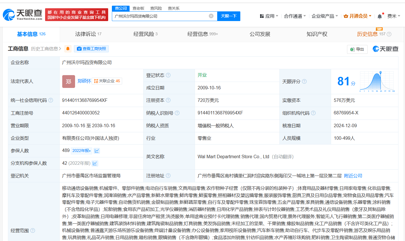 天眼查经营风险信息显示,近日,广州沃尔玛百货有限公司因营业性文化娱乐场所的边界噪声,或者在商业经营活动中使用空调器、冷却塔、抽风机、发电机、水泵、音响设施或其他产生噪声污染的设备,超过噪声排放标准排放社会生活噪声,被广州市生态环境局罚款1万元。