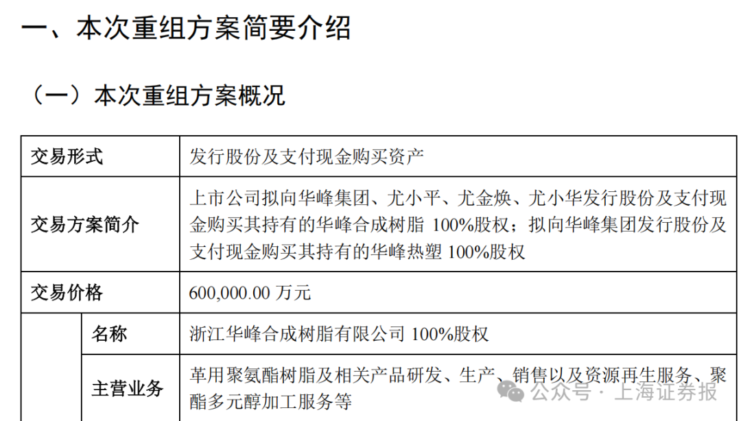 4月12日,筹划近半年后,华峰化学在重组报告书草案中透露,上述两项交易价格合计为60亿元。