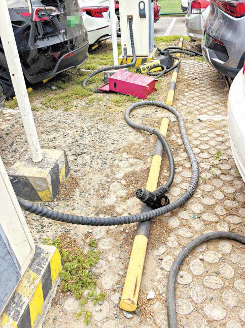 “每天就这么风吹日晒雨淋着,难免会老化,也不知道现在还能不能用。”一个月前,租车位的业主突然联系程先生,告诉他充电桩出了点意外。“前段时间小区物业重新修整路面,不小心把充电桩埋在地下的线缆给挖断了。按照物业的说法,如果需要索赔,可以找施工方。”