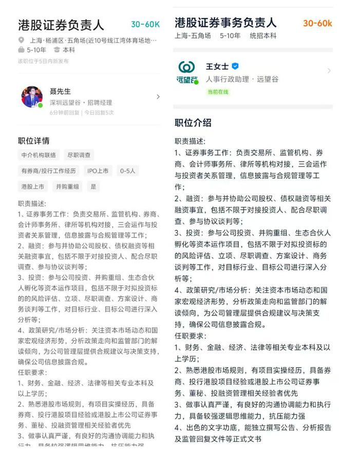 值得注意的是,BOSS直聘显示,港股证券负责人岗位系5日内新发布。